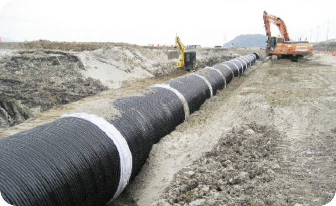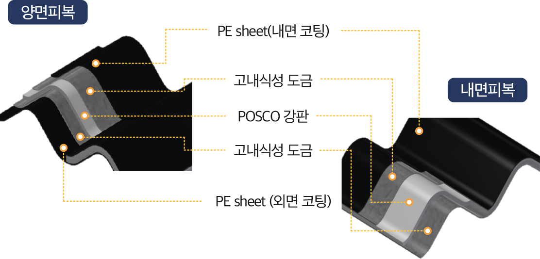 기존의 파형강관 원재료인 내식도금강판에 고내식성 PE(Polyethelane) SHEET를 선피복하여 파형 성형한 제품으로 내마모성 및 내식성과 외압강도를 향상시킨 이상적인 배수구조물